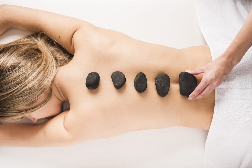 use of smooth heated volcanic stones resulting in an intensely